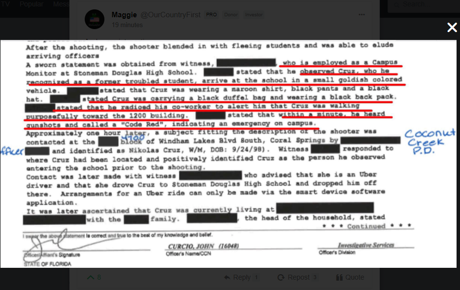 School as the carnage was taking place. The reports came from Coral Springs Police Department