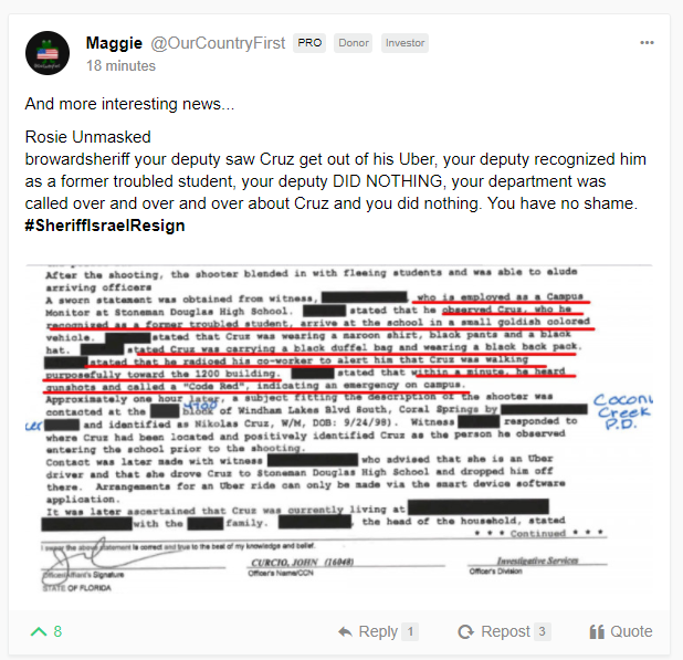 A GAB post from a person who goes by the name of Maggie@OurCountyFist produced a redacted